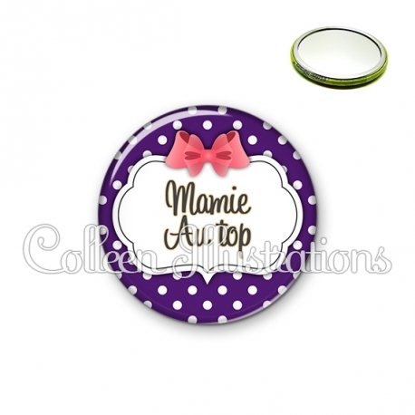 Miroir simple avec dos métallique décoré d'une image fantaisie et texte.
