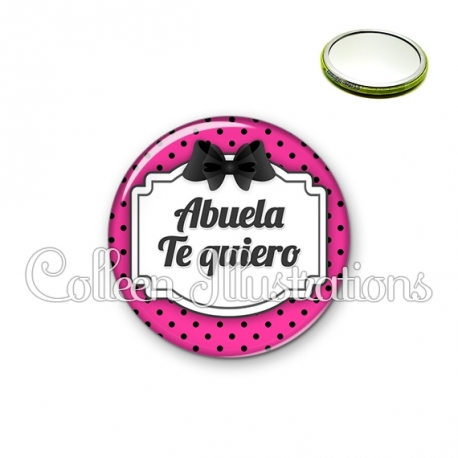 Miroir simple avec dos métallique décoré d'une image fantaisie et texte.