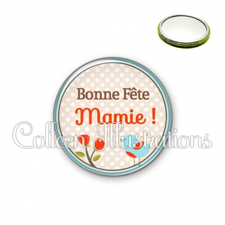 Miroir simple avec dos métallique décoré d'une image fantaisie et texte.