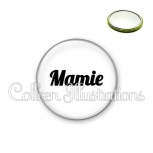 Miroir simple avec dos métallique décoré d'une image fantaisie et texte.