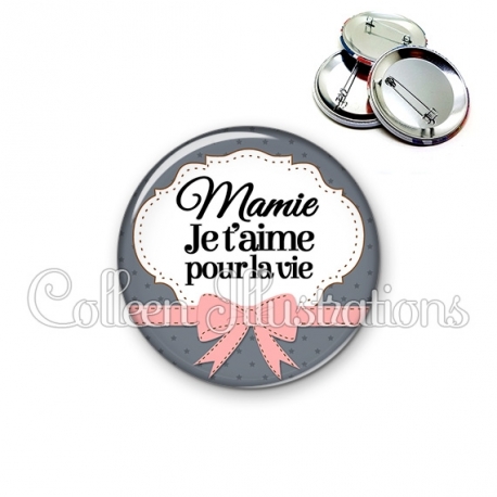 Badge Mamie je t'aime pour la vie.