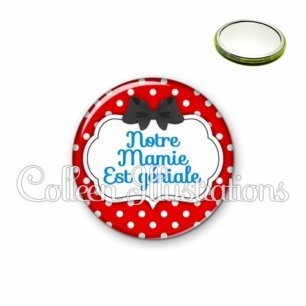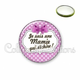 Miroir simple avec dos métallique décoré d'une image fantaisie et texte.