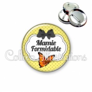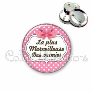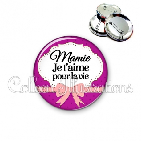 Image imprimée en haute résolution sur papier de qualité, protégée d'un film plastique, et sertie sur une coque et épingle métallique.