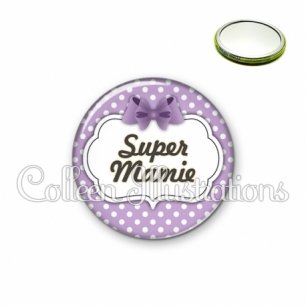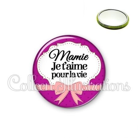 Miroir simple avec dos métallique décoré d'une image fantaisie et texte.