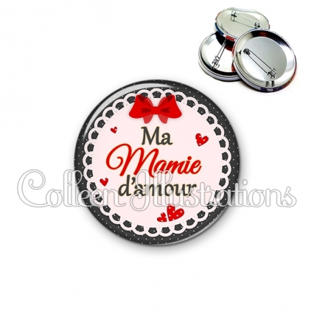 Image imprimée en haute résolution sur papier de qualité, protégée d'un film plastique, et sertie sur une coque et épingle métallique.