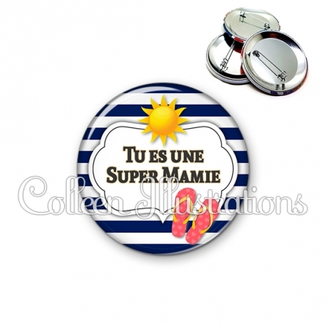 Image imprimée en haute résolution sur papier de qualité, protégée d'un film plastique, et sertie sur une coque et épingle métallique.