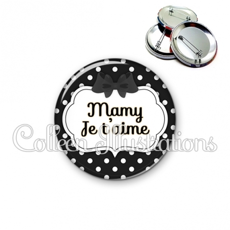 Image imprimée en haute résolution sur papier de qualité, protégée d'un film plastique, et sertie sur une coque et épingle métallique.