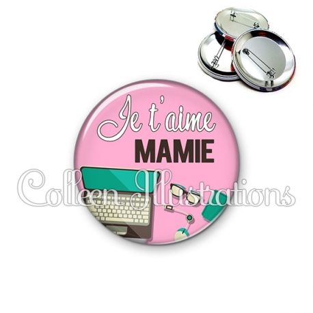 Image imprimée en haute résolution sur papier de qualité, protégée d'un film plastique, et sertie sur une coque et épingle métallique.