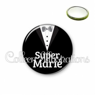 Miroir simple avec dos métallique décoré d'une image fantaisie et texte.