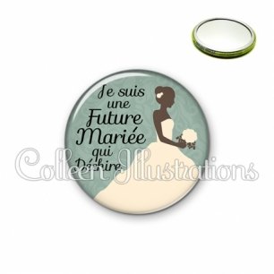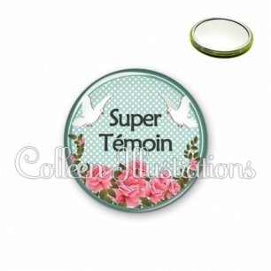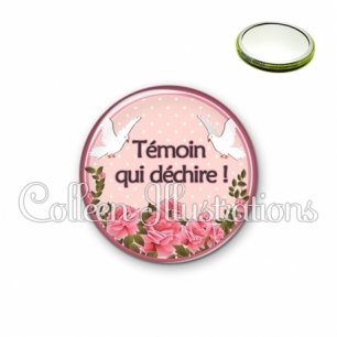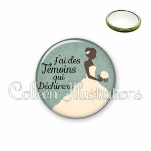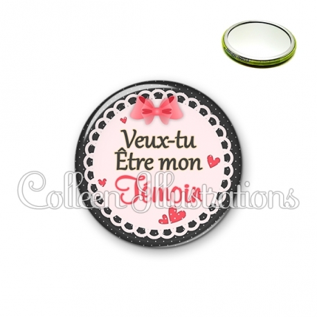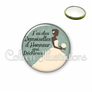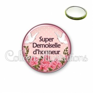 Miroir simple avec dos métallique décoré d'une image fantaisie et texte.
