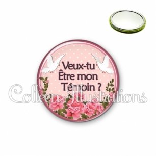 Miroir simple avec dos métallique décoré d'une image fantaisie et texte.