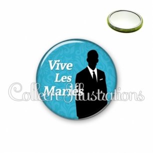 Image imprimée en haute résolution sur papier de qualité, protégée d'un film plastique, et sertie sur une coque métallique avec dos miroir. Une seule face, non grossissante.