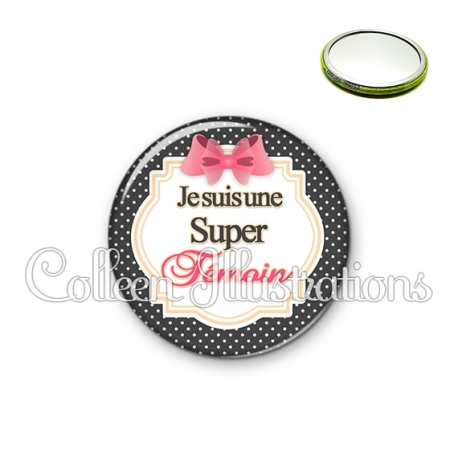 Miroir simple avec dos métallique décoré d'une image fantaisie et texte.