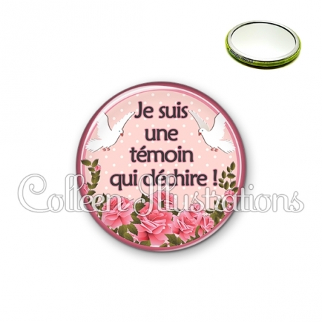 Miroir simple avec dos métallique décoré d'une image fantaisie et texte.