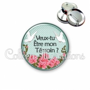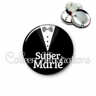 Image imprimée en haute résolution sur papier de qualité, protégée d'un film plastique, et sertie sur une coque et épingle métallique.