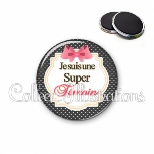 Image imprimée en haute résolution sur papier de qualité, protégée d'un film plastique, et sertie sur une coque métallique avec dos aimanté.
