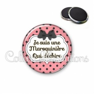 Image imprimée en haute résolution sur papier de qualité, protégée d'un film plastique, et sertie sur une coque métallique avec dos aimanté.