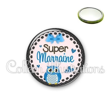 Miroir simple avec dos métallique décoré d'une image fantaisie et texte.
