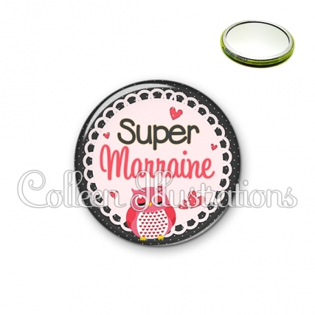 Miroir simple avec dos métallique décoré d'une image fantaisie et texte.