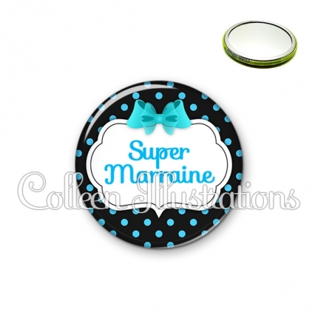 Miroir simple avec dos métallique décoré d'une image fantaisie et texte.