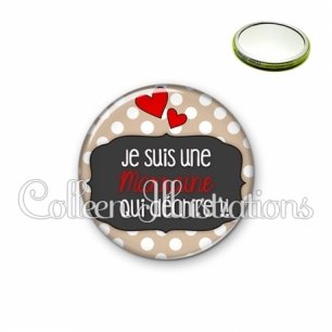 Miroir simple avec dos métallique décoré d'une image fantaisie et texte.