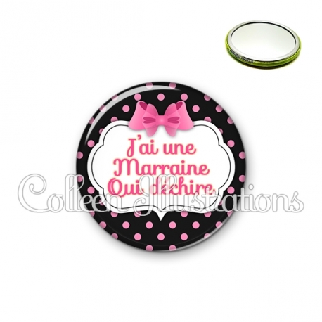 Miroir simple avec dos métallique décoré d'une image fantaisie et texte.