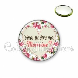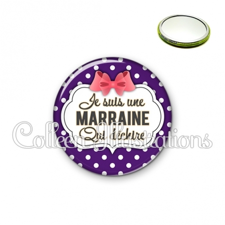Miroir simple avec dos métallique décoré d'une image fantaisie et texte.
