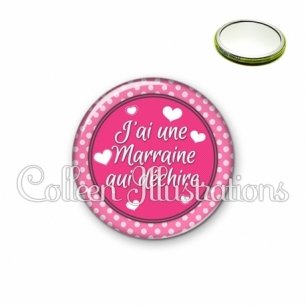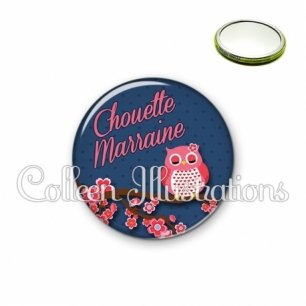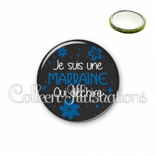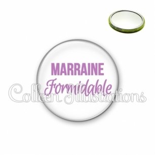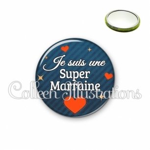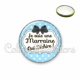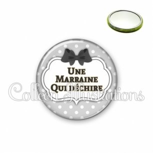 Miroir simple avec dos métallique décoré d'une image fantaisie et texte.