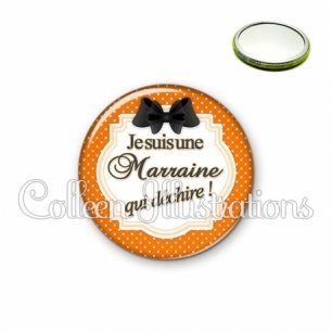 Miroir simple avec dos métallique décoré d'une image fantaisie et texte.