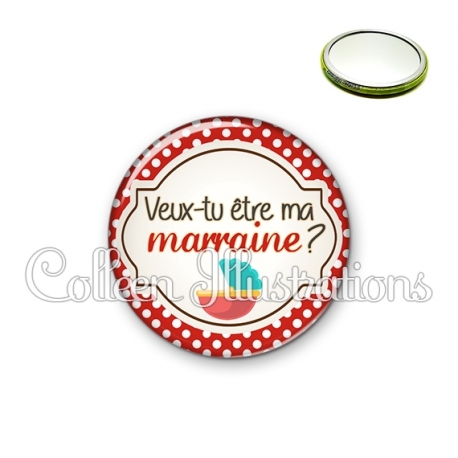 Miroir simple avec dos métallique décoré d'une image fantaisie et texte.