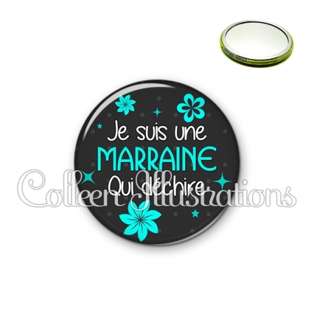 Miroir simple avec dos métallique décoré d'une image fantaisie et texte.