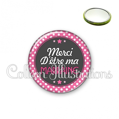 Miroir simple avec dos métallique décoré d'une image fantaisie et texte.