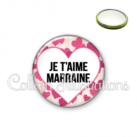 Miroir simple avec dos métallique décoré d'une image fantaisie et texte.