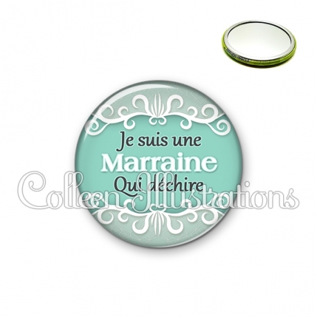Miroir simple avec dos métallique décoré d'une image fantaisie et texte.