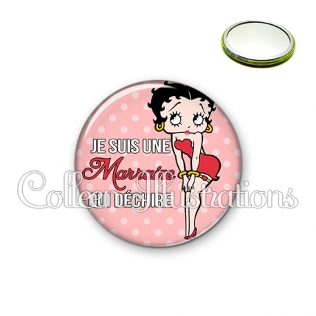 Miroir simple avec dos métallique décoré d'une image fantaisie et texte.