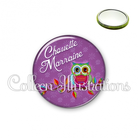 Miroir simple avec dos métallique décoré d'une image fantaisie et texte.