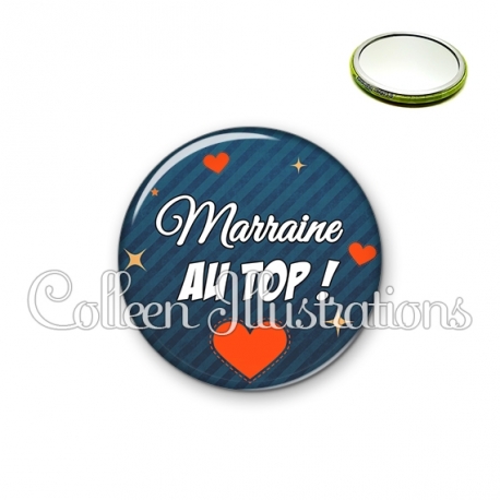 Miroir simple avec dos métallique décoré d'une image fantaisie et texte.