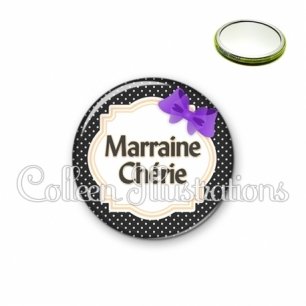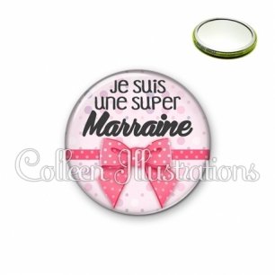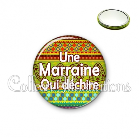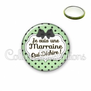 Miroir simple avec dos métallique décoré d'une image fantaisie et texte.