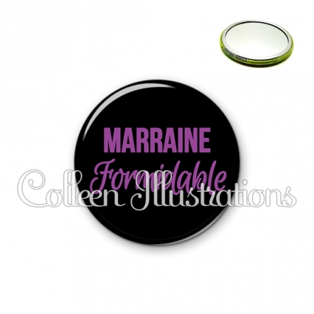 Miroir simple avec dos métallique décoré d'une image fantaisie et texte.
