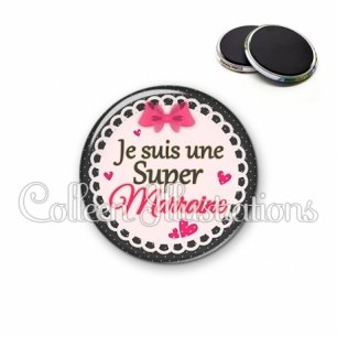 Magnet métallique avec image fantaisie et texte.