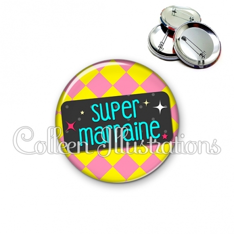 Image imprimée en haute résolution sur papier de qualité, protégée d'un film plastique, et sertie sur une coque et épingle métallique.