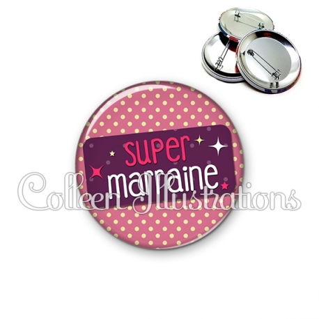 Image imprimée en haute résolution sur papier de qualité, protégée d'un film plastique, et sertie sur une coque et épingle métallique.