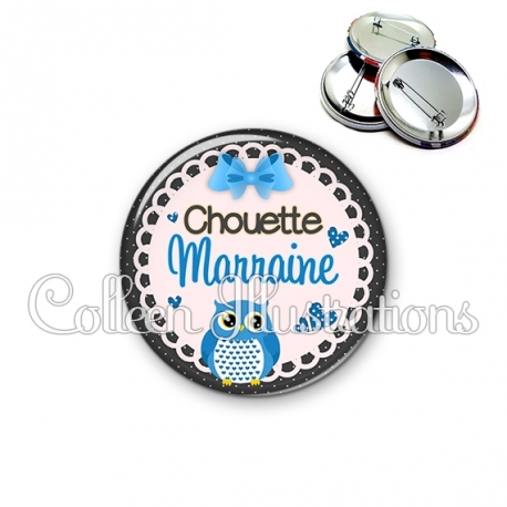 Image imprimée en haute résolution sur papier de qualité, protégée d'un film plastique, et sertie sur une coque et épingle métallique.