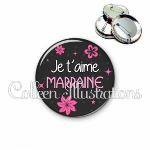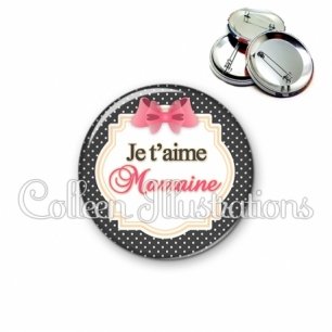 Image imprimée en haute résolution sur papier de qualité, protégée d'un film plastique, et sertie sur une coque et épingle métallique.