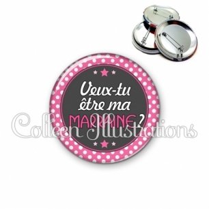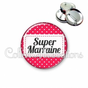 Image imprimée en haute résolution sur papier de qualité, protégée d'un film plastique, et sertie sur une coque et épingle métallique.