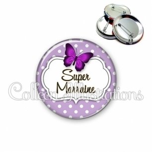 Image imprimée en haute résolution sur papier de qualité, protégée d'un film plastique, et sertie sur une coque et épingle métallique.
