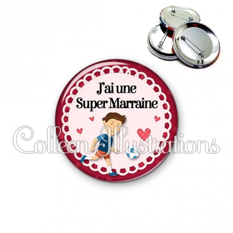 Image imprimée en haute résolution sur papier de qualité, protégée d'un film plastique, et sertie sur une coque et épingle métallique.