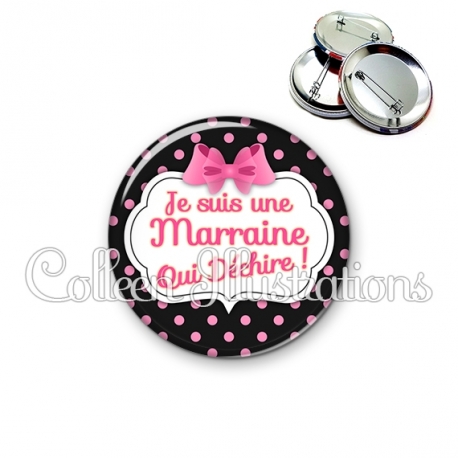 Badge 56mm Marraine qui déchire (006NOI21)