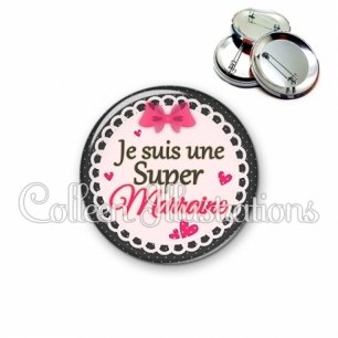 Image imprimée en haute résolution sur papier de qualité, protégée d'un film plastique, et sertie sur une coque et épingle métallique.