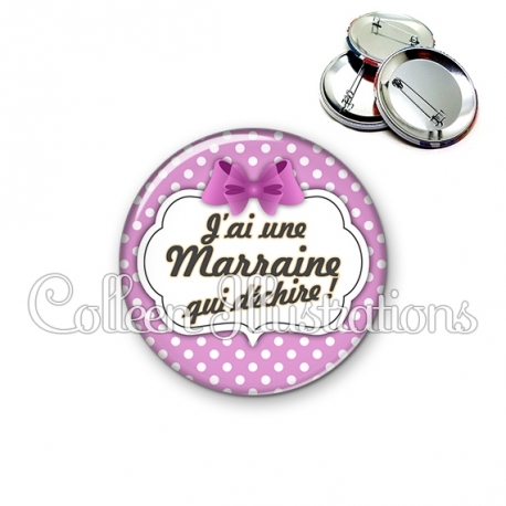 Image imprimée en haute résolution sur papier de qualité, protégée d'un film plastique, et sertie sur une coque et épingle métallique.